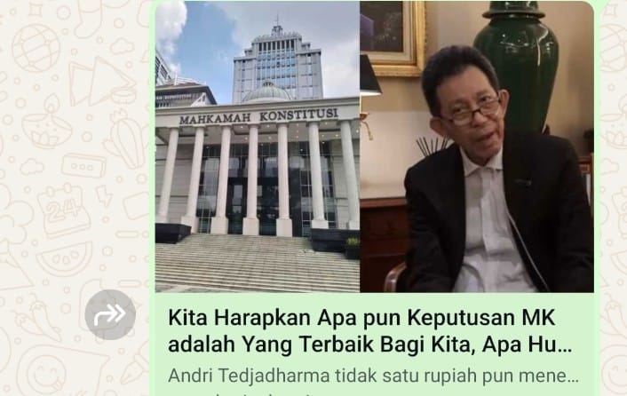 Andri meminta MK mengambil sikap tegas: membatalkan kewenangan absolut PUPN dan memerintahkan revisi UU PUPN.