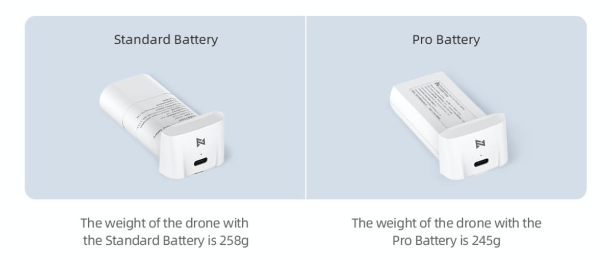 Bobotnya bergantung pada baterai yang digunakan. FIMI menyediakan dua opsi baterai. Dengan baterai Pro bobotnya hanya 245 gram. Sementara, baterai standar bobotnya 258 gram. Kedua baterai ini hanya beda kapasitas 200mAh saja. Jadi, dengan baterai standar waktu terbangnya selama 30 menit dan baterai pro bisa 31 menit.