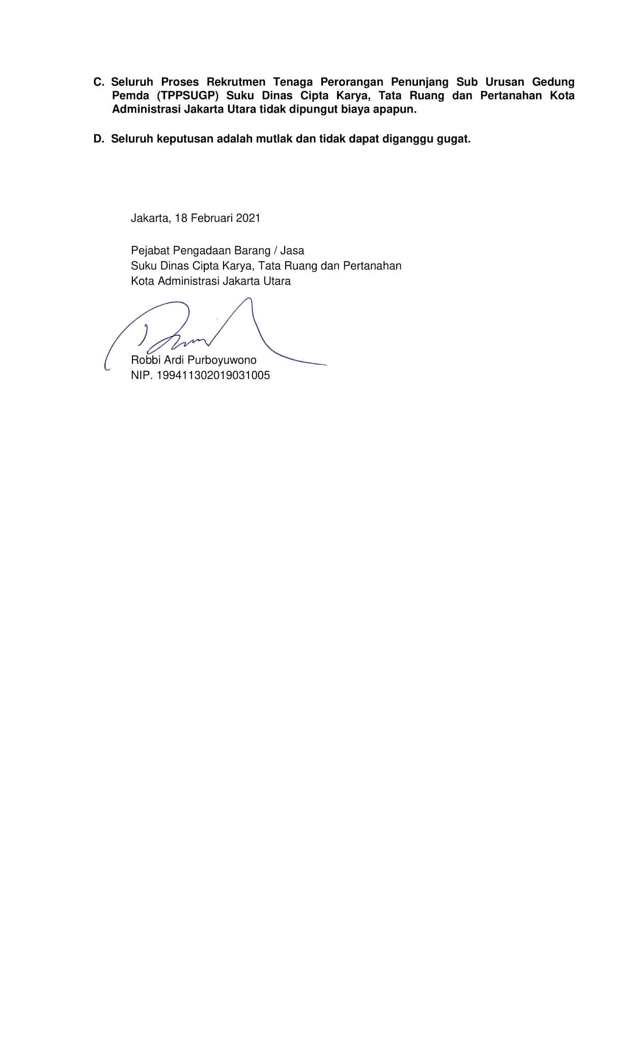 Karer.ID, Dinas Cipta Karya Tata Ruang dan Pertanahan Februari 2021