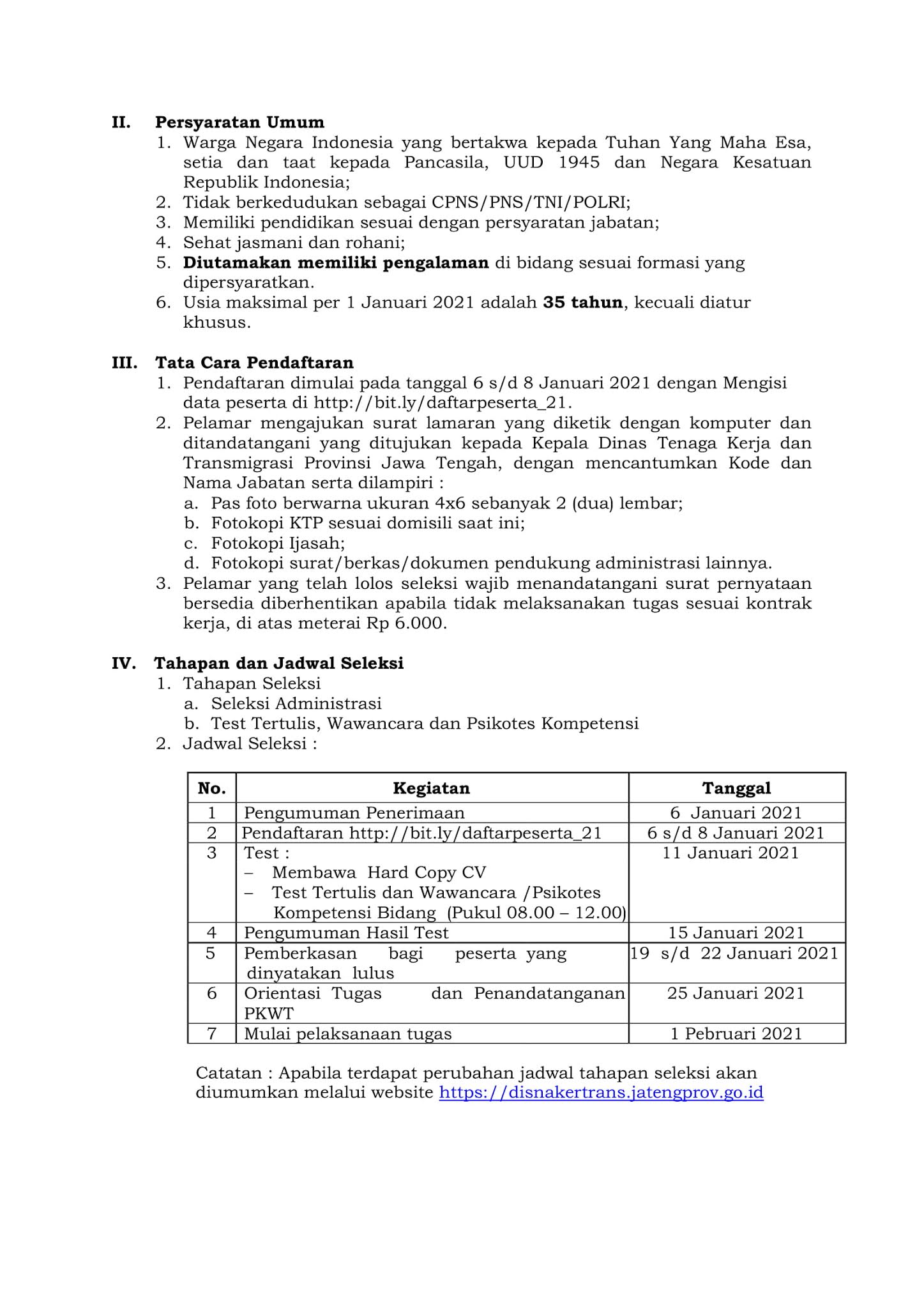Non PNS Dinas Tenaga Kerja dan Transmigrasi Bulan Januari 2021 Januari 2021: