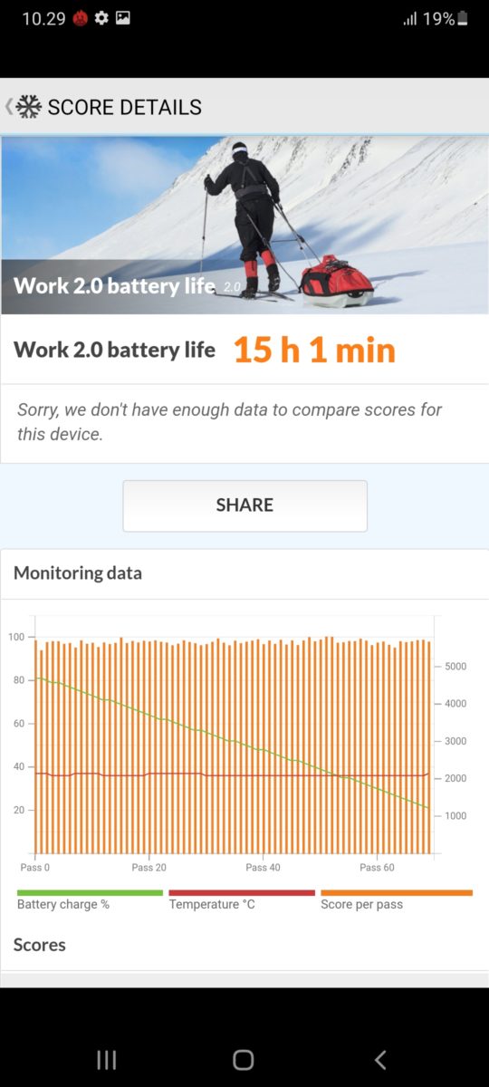 Untuk asupan tenaganya Galaxy A32 membawa baterai yang kapasitasnya 5000mAh. Tergolong besar dan baterainya bisa menemani Anda hingga seharian. Untuk hasil benchmark baterainya sebagai berikut.